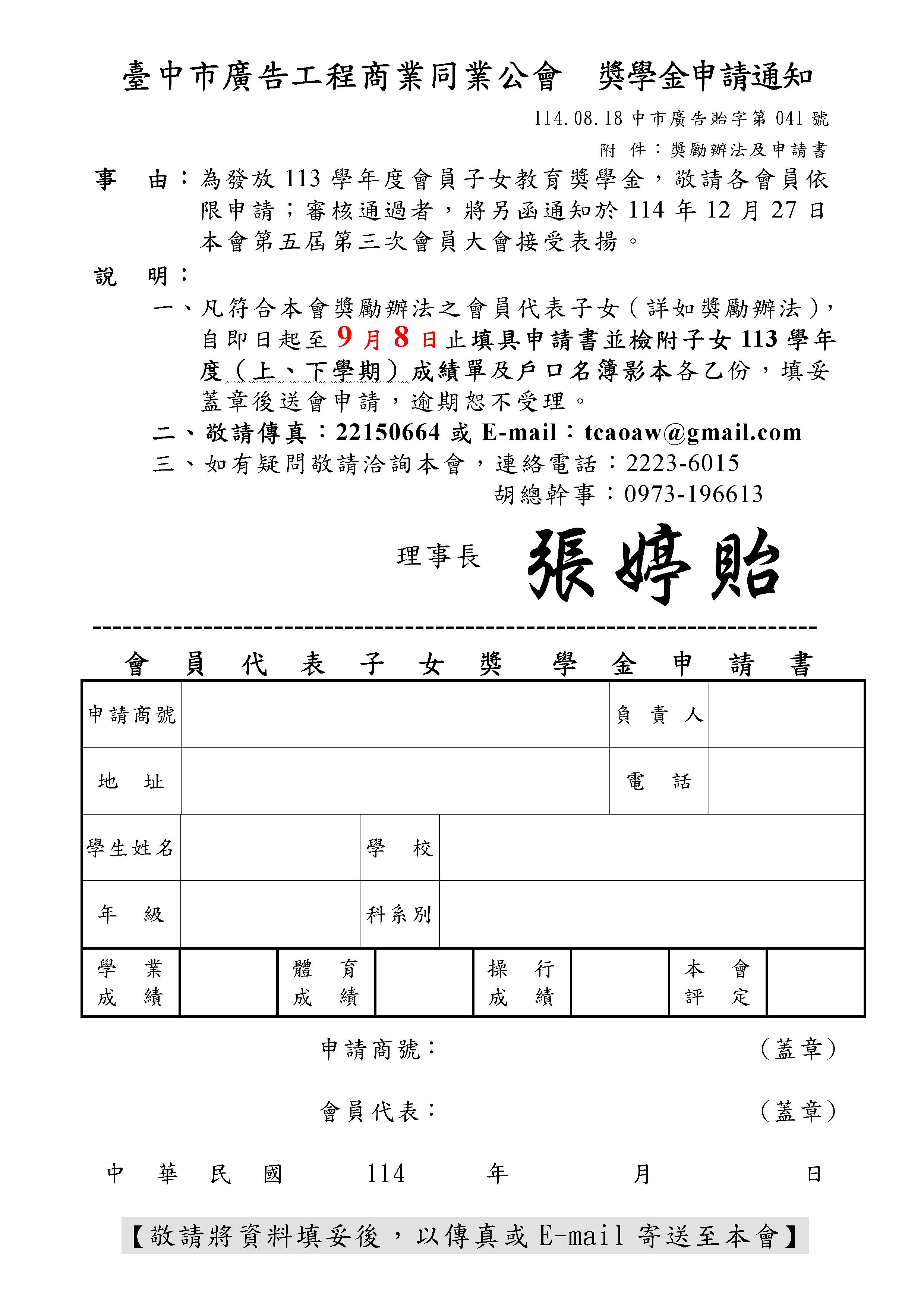 113學年度會員子女教育獎學金,敬請各會員依限申請。