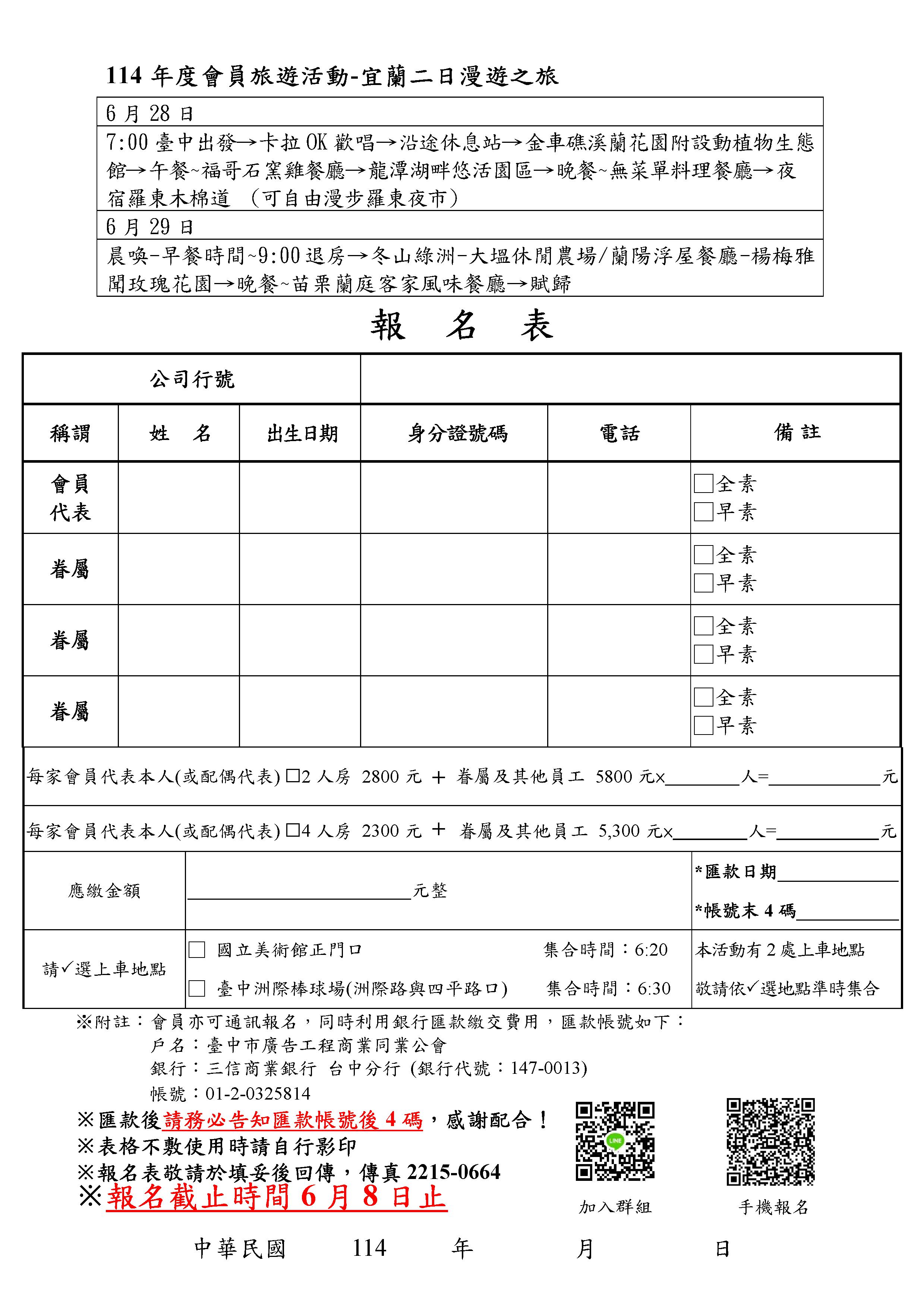 113年會員春季聯誼活動—青青湖畔烤肉踏青 報名表
